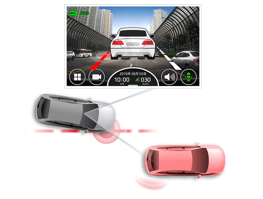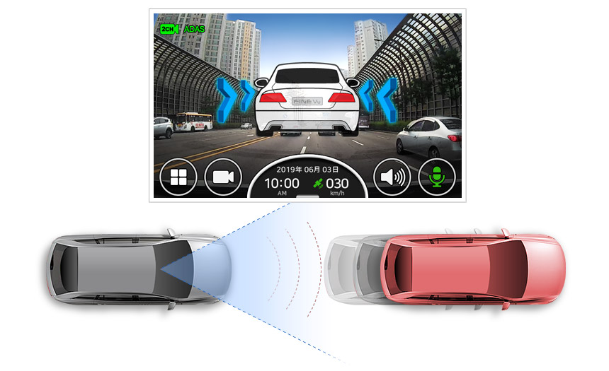 運転の際走行車線と先行車を自動的に感知して道路での安全運転ができるようにドライバーに警告します。