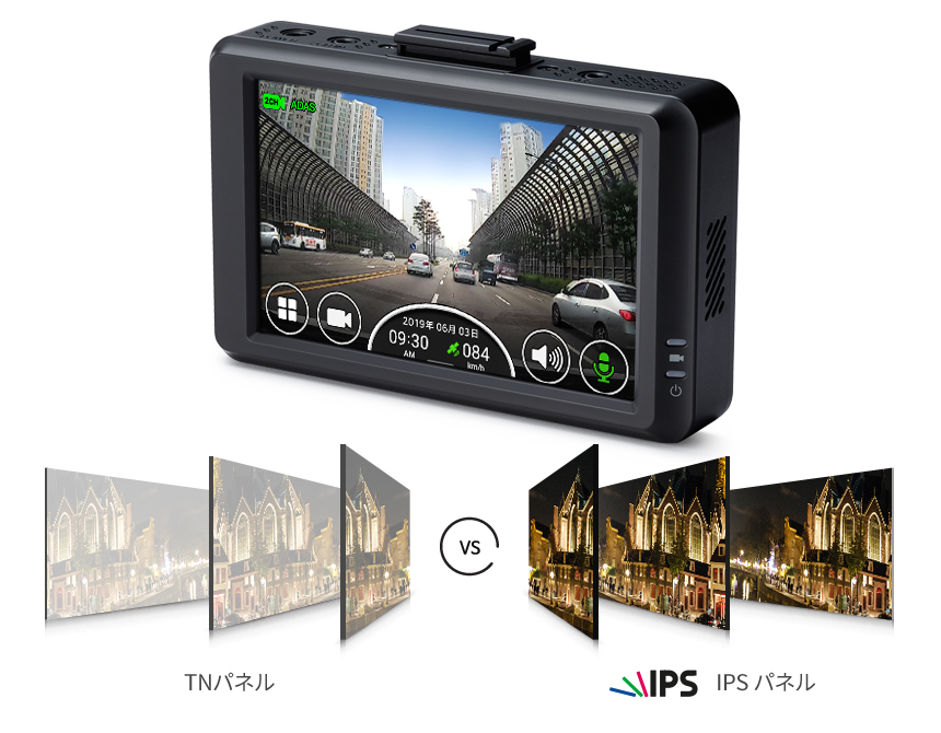 2カメラ 1080P フルHD - 1080P フルHD │ 3.5" IPS タッチパネル LCD