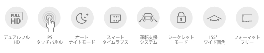 155° ワイド画角 │ フォーマットフリー │ シークレットモード │ PC ビューア
